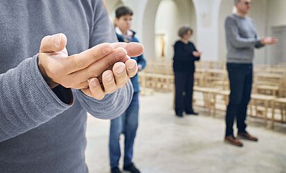 Übungsschritte aus der Kontemplation helfen in die Stille zu finden. Sie sind wie ein Geländer, das Halt geben und Orientierung bieten kann. Vorerfahrungen braucht es nicht – jede:r ist willkommen. Sprechen Sie uns gerne an, wenn Sie das erste Mal da sind.